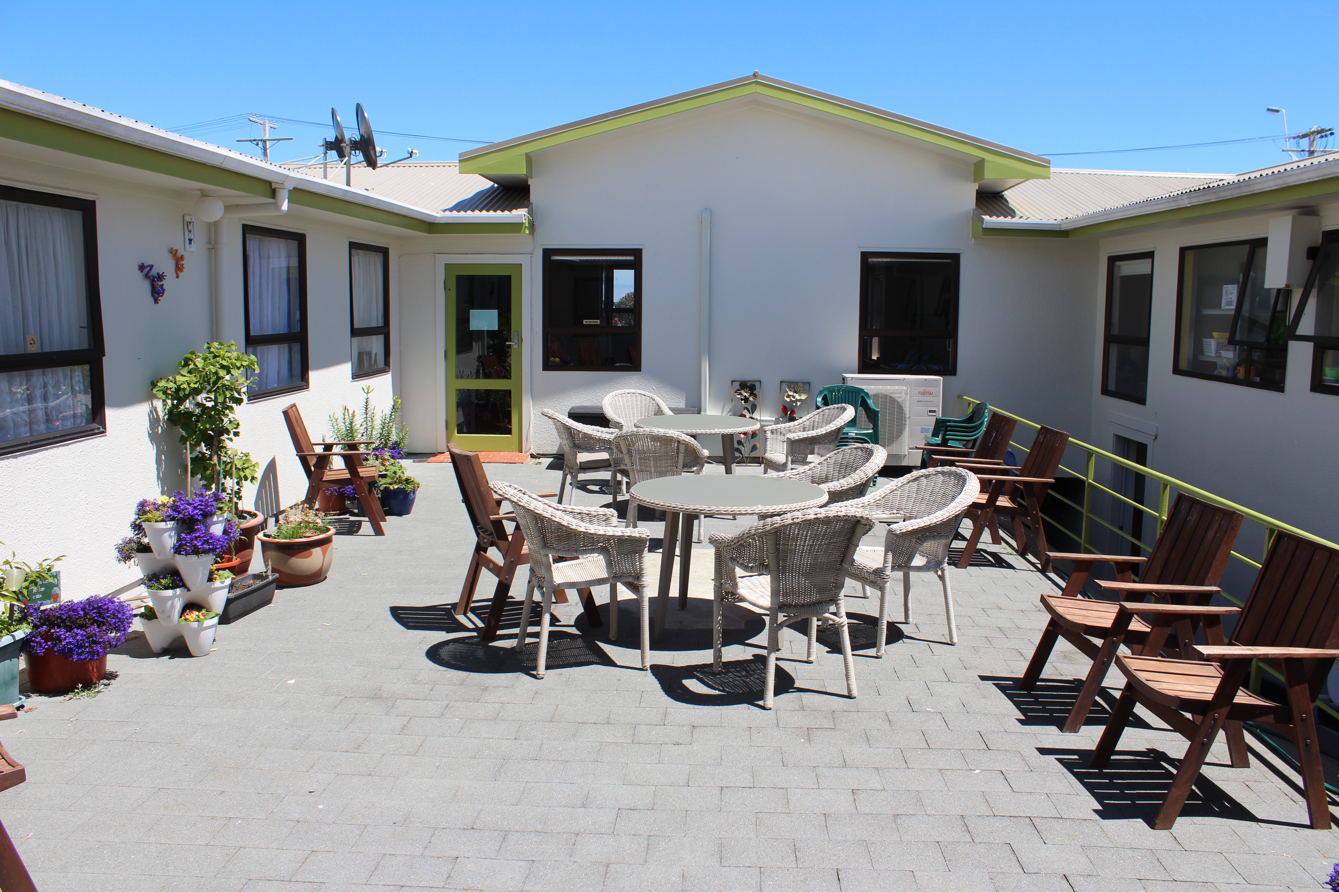Our lounge is located at the front of the building with views towards the beach and Kapiti Island, and we have a central courtyard which is a great spot to safely sit outside and enjoy the Kapiti sunshine.
